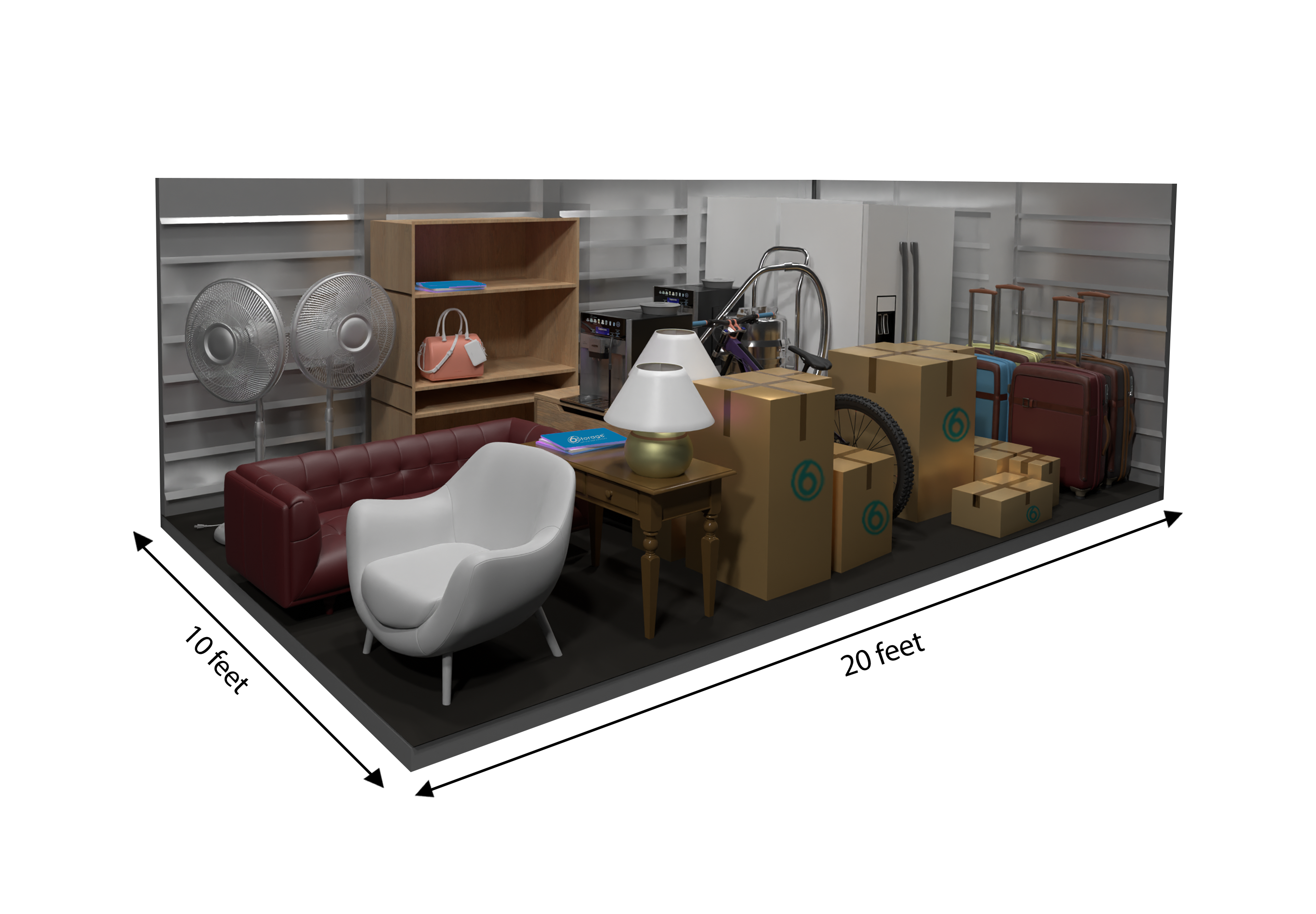 Our 10×10 unit fits the contents of an entire family room or two full bedrooms, including several small to medium-sized boxes.